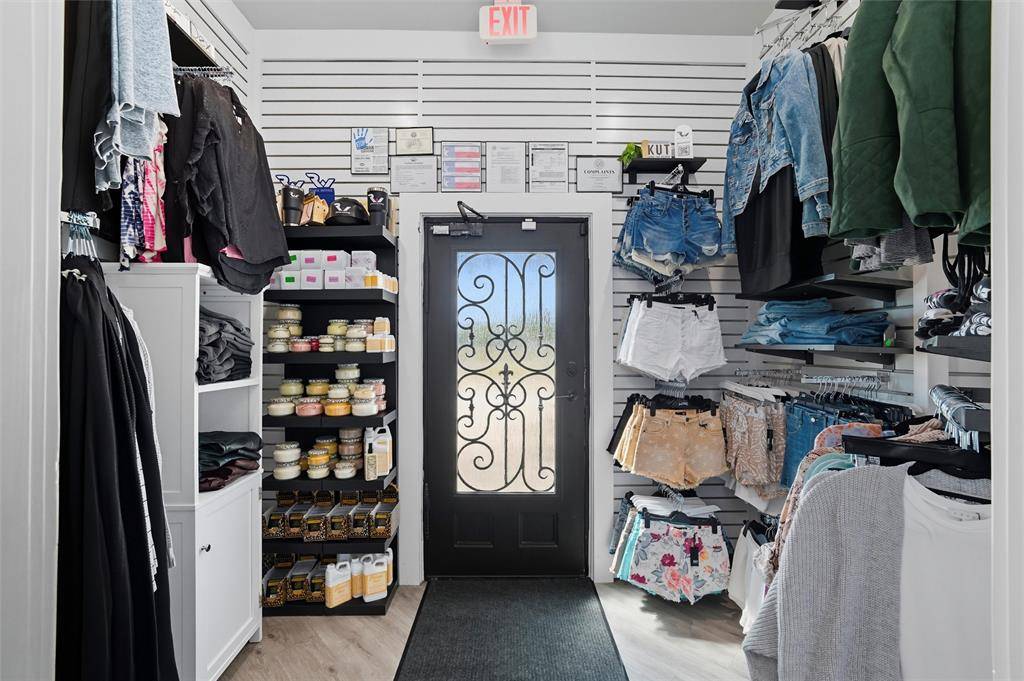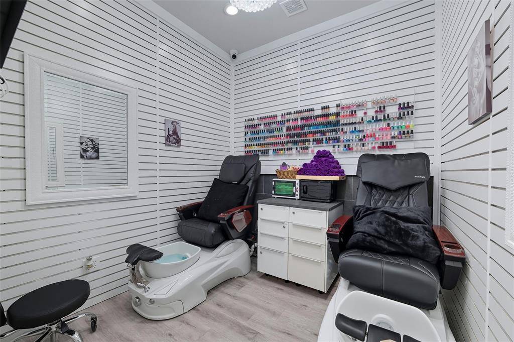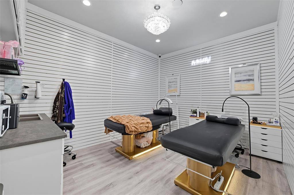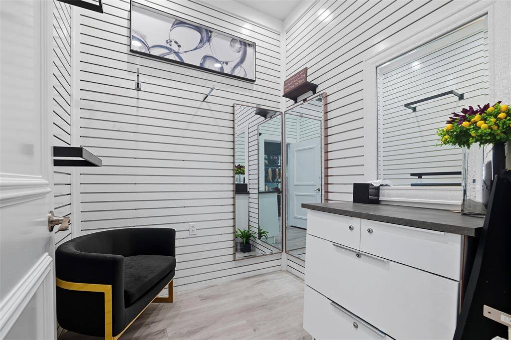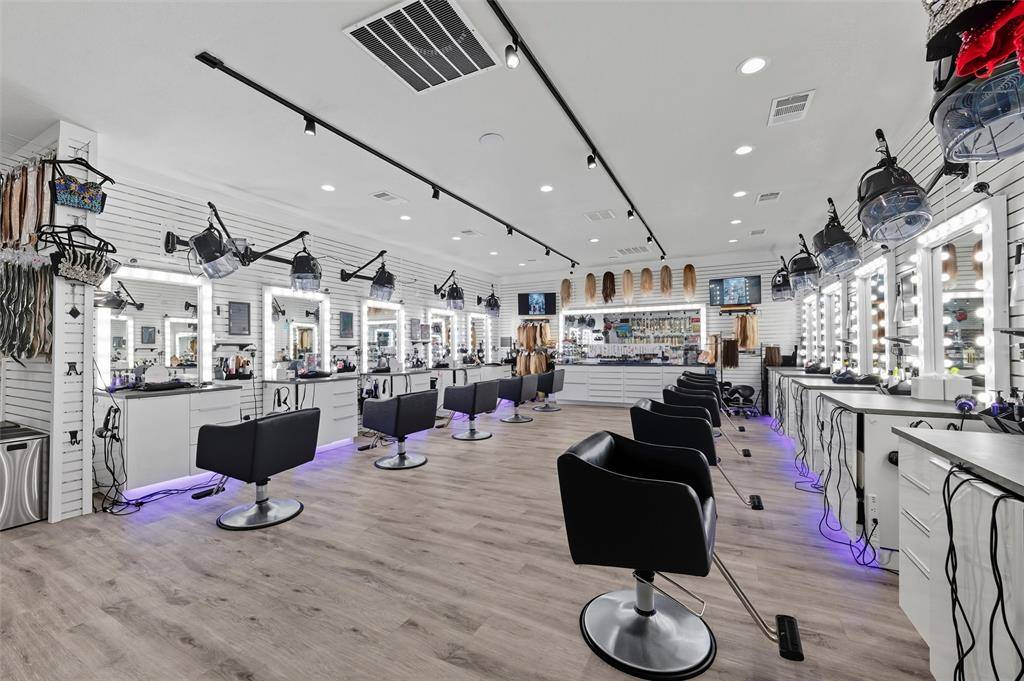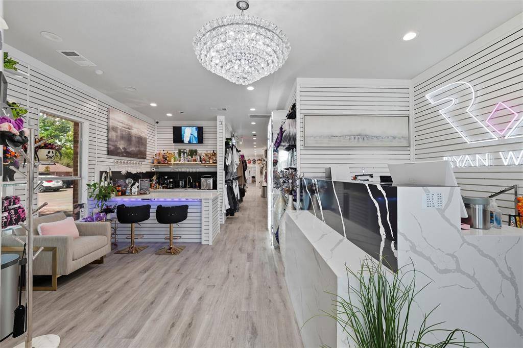 Exceptional & rare opportunity in prime location! Stand-alone building on nearly 1 acre located on W Harwood between Highway 121 & Grapevine Highway SH 26. Zoned PD for a variety of commercial & office uses. Originally built in 2000 & remodeled in 2022 w a modern vibe, currently operating as an upscale salon offering a comprehensive range of services. The interior space has been designed to include a reception area w coffee bar, sink & waiting lounge w wall mounted water fountain. Behind the reception desk is a sizable storage closet. The retail shopping area provides dressing rooms, restroom & leads to the spacious salon section. Current salon amenities consist of 10 styling stations w styling chairs & lighted mirrors, 8-station shampoo area, separate nail station, private pedicure room, private salon suite w a styling station & shampoo bowl, dedicated massage & tanning rooms & flex spaces suitable for office, storage or breakroom. There are 2 kitchen areas both equipped w loads of cabinet space, sink, room for refrigerator, 1 w a dishwasher, the other w space for a large table, & employee restroom nearby. The laundry area offers a sink, cabinetry, drawers & the capacity for 2 stackable washer & dryer sets. Additional interior features include a mechanical room, security system w cameras, mounted flat-screen TVs w brackets, tons of cabinet & drawer space, chandeliers & upgraded lighting (track & recessed). Exterior features include road frontage, stone elevation, prominent monument signage, ample open parking lot, enclosed trash bin area, sprinkler system, maintained grounds & fire hydrant near parking area. The Sellers also have for sale 5017 Colleyville Blvd zoned CC1-Village Retail w City approved Grant to assist w improvements (MLS 21166944). Buyer to verify all information provided.